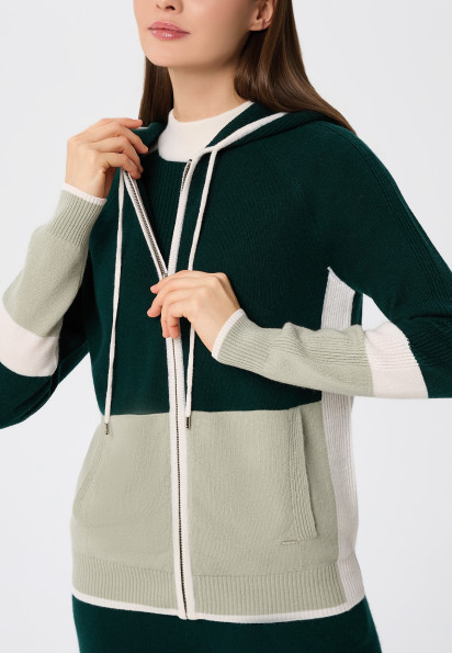 Кашеміровий джемпер на блискавці з капюшоном