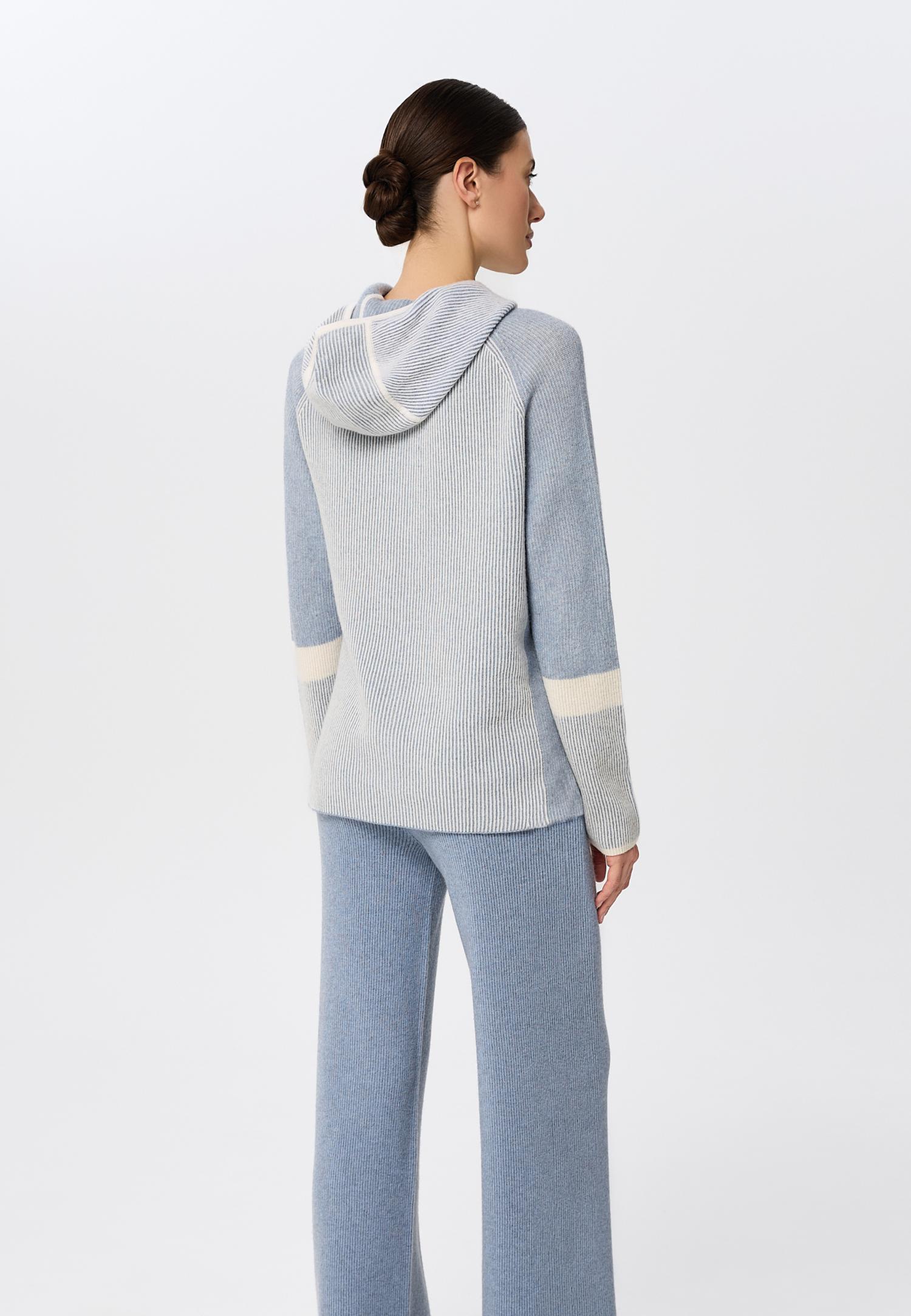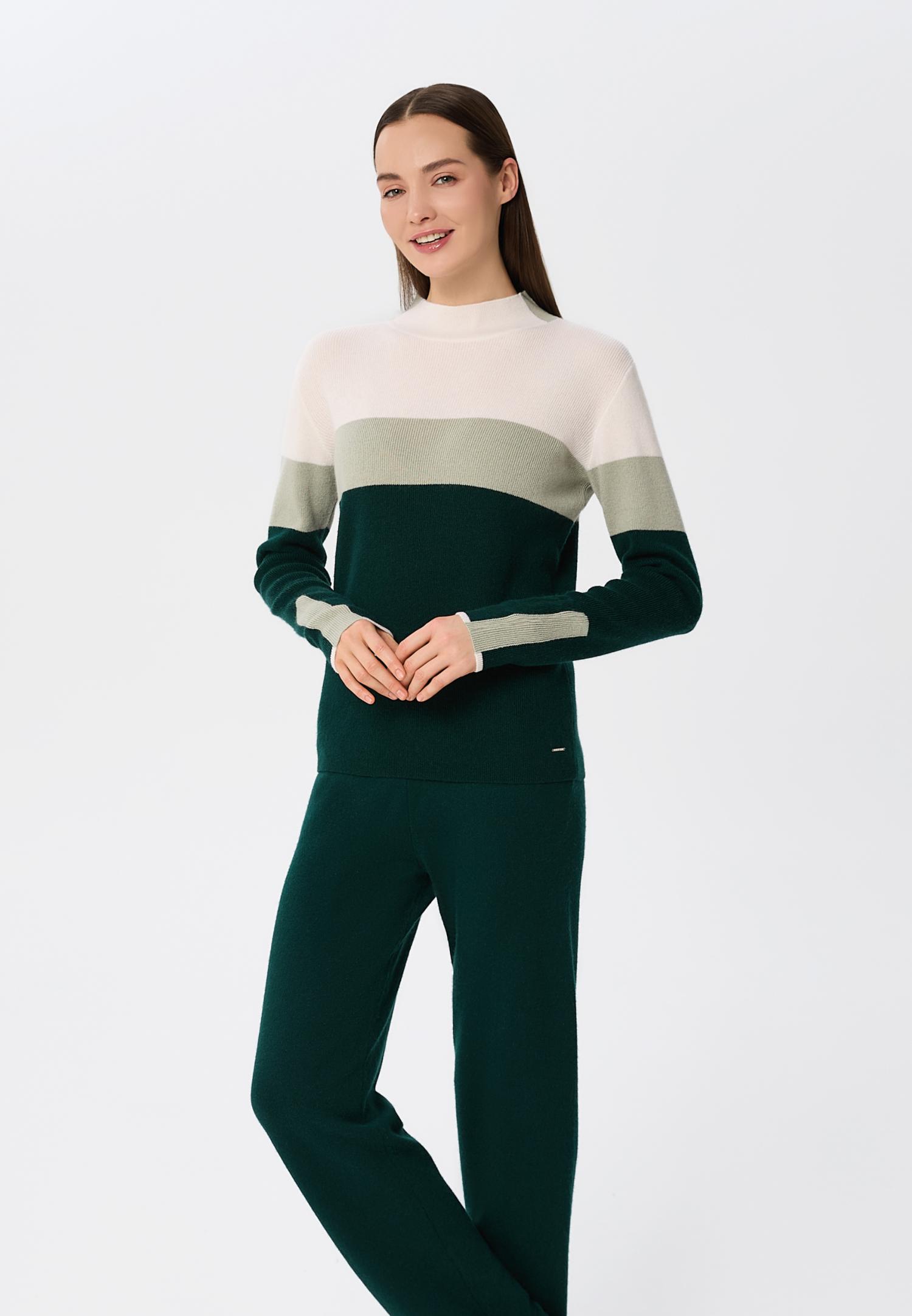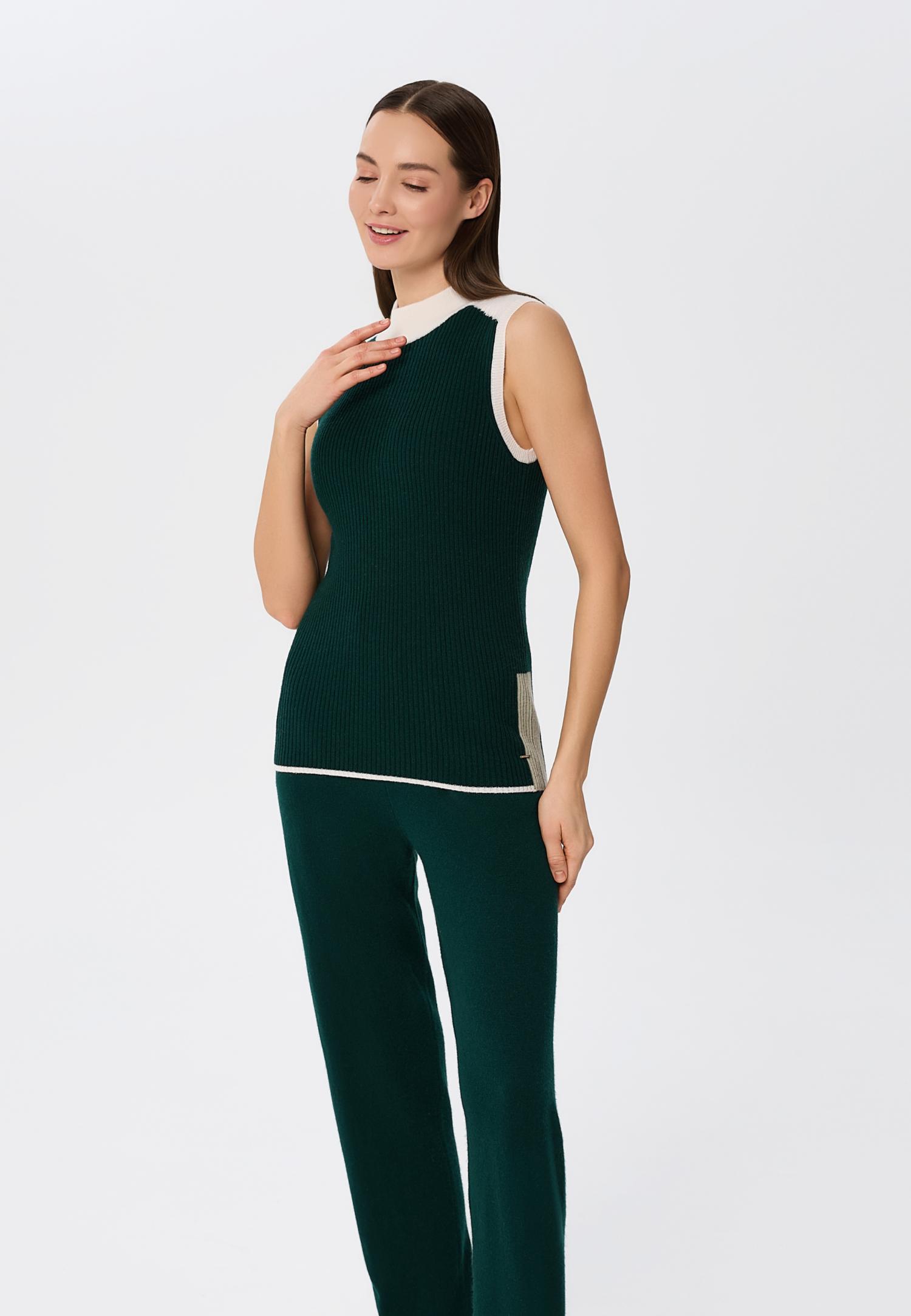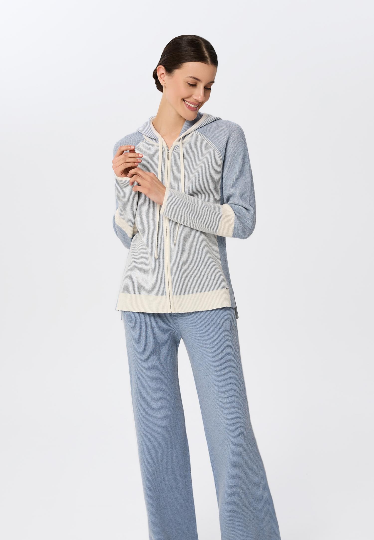 Еластичний пояс з куліскою забезпечує ідеальну посадку та свободу рухів, а контрастні деталі в стилі колор-блок на щиколотці та поясі додають родзинку та сучасний акцент в образ. М'який кашемір не тільки тішить тактильними відчуттями, а й створює атмосферу спокою протягом усього дня.