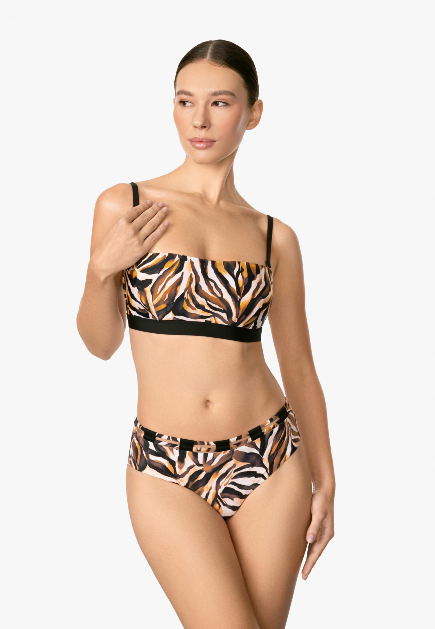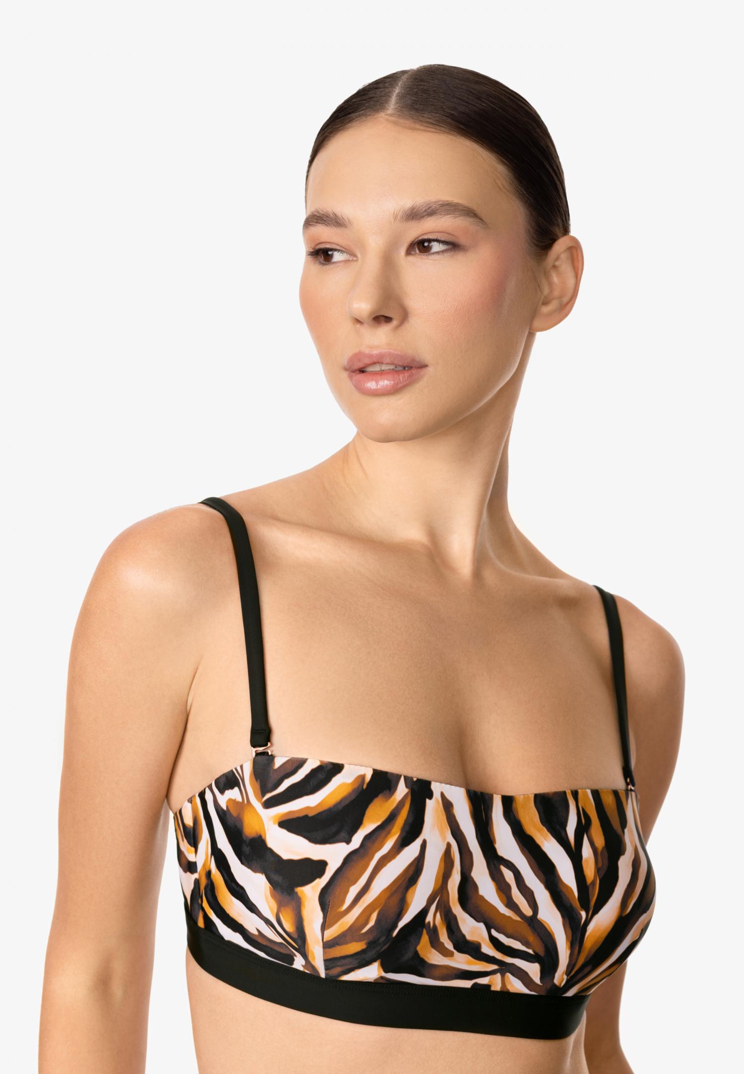 М'яка трикутна чашка з тонкими знімними коректорами. Декольте оформлено декоративними шнурами, а бретелі зав'язуються на спині і навколо шиї, створюючи вишуканий силует.