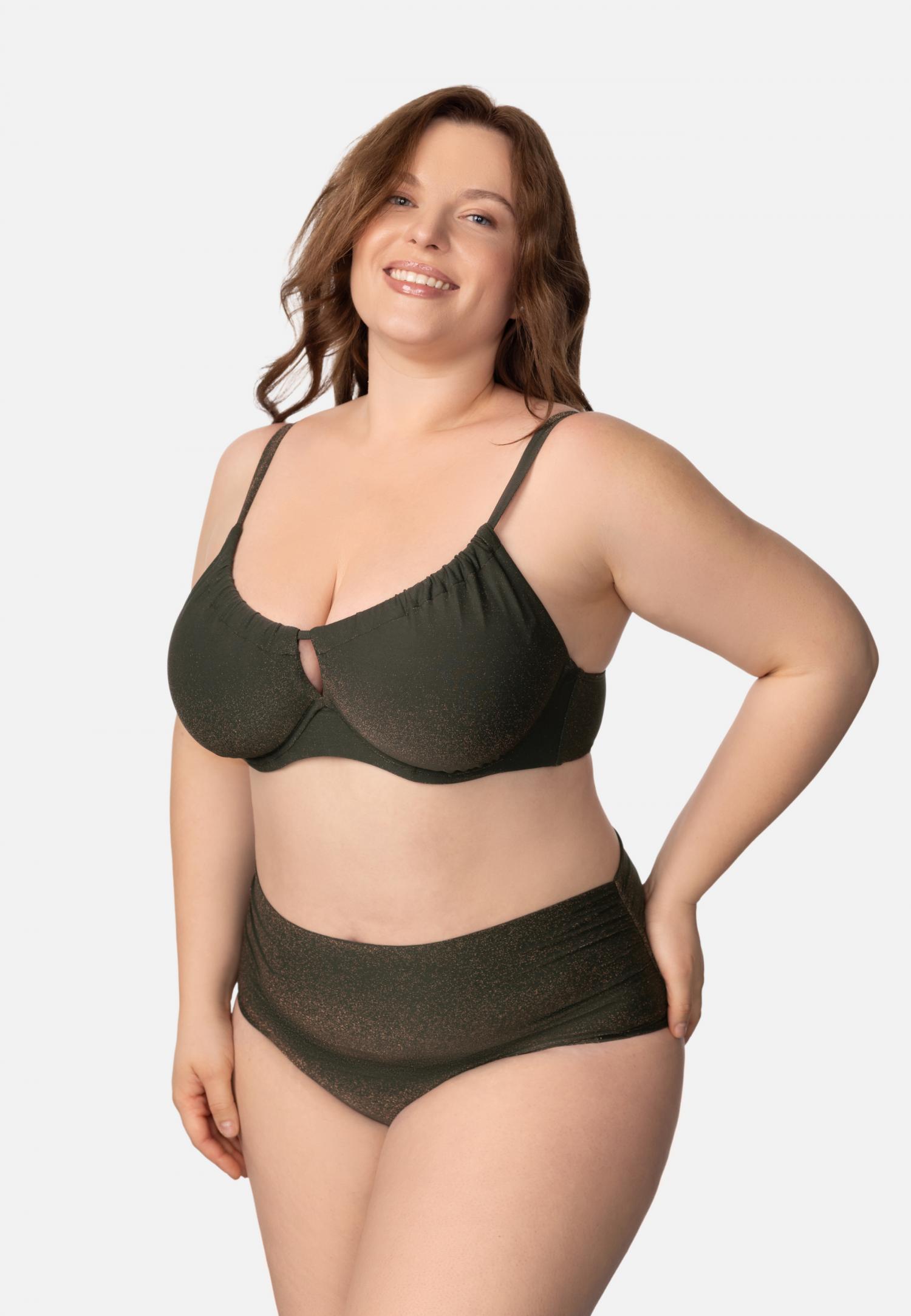 Купальник з формованою чашкою на каркасній підтримці створює ідеальний силует і забезпечує комфорт. Асиметрична складна драпіровка внахлест на передній деталі робить фігуру візуально стрункішою і надає елегантність. Широкі регульовані бретелі дозволяють вибрати зручний варіант фіксації на спині, забезпечуючи ідеальну посадку.