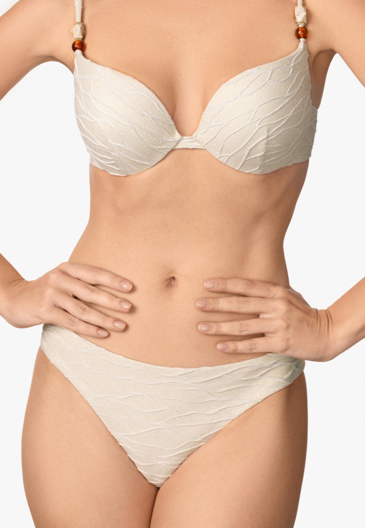 Серія BABYLON — сучасне переосмислення класики, де кожен силует виконаний з вишуканого італійського жакарду із золотою ниткою. Мерехтлива нитка надає виробам жвавості та глибини, перетворюючи купальник на справжню прикрасу.
