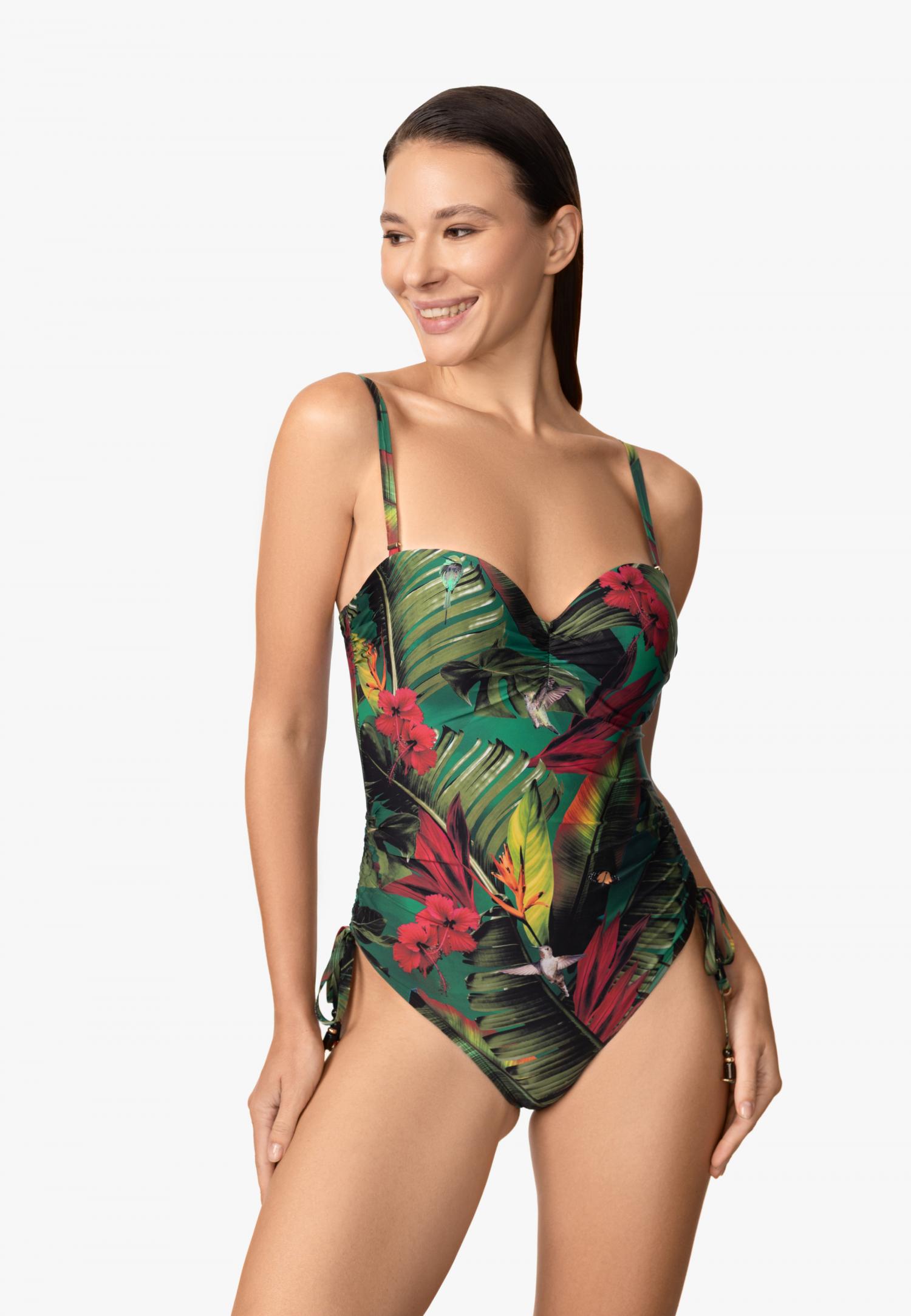 Серія WILD RHYTHM заряджає тропічною енергією. Авторський принт немов оживає на тканині, задаючи ритм і надаючи впевненості кожному руху. Регульовані ремінці і динамічні лінії підкреслюють свободу і унікальність силуету.