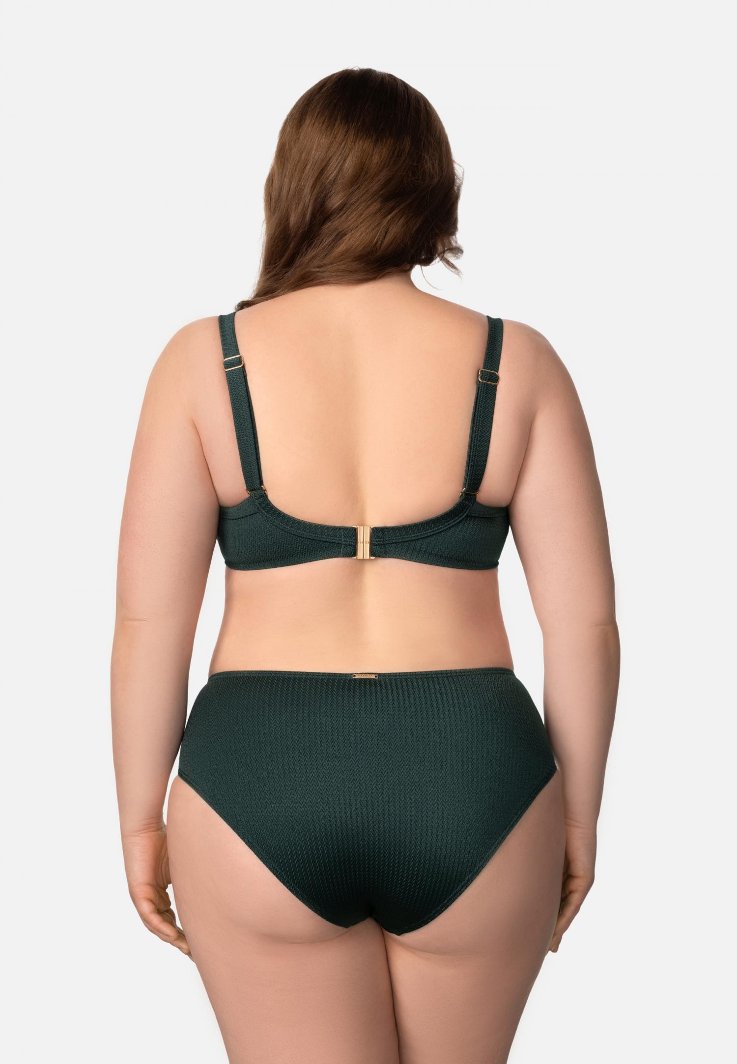 Бріфи із середньою посадкою підкреслюють природні вигини фігури, створюючи гармонійний силует. Декоративне драпірування на зав'язках на передній деталі додає елегантний акцент і легкість образу, роблячи модель стильною і жіночною.