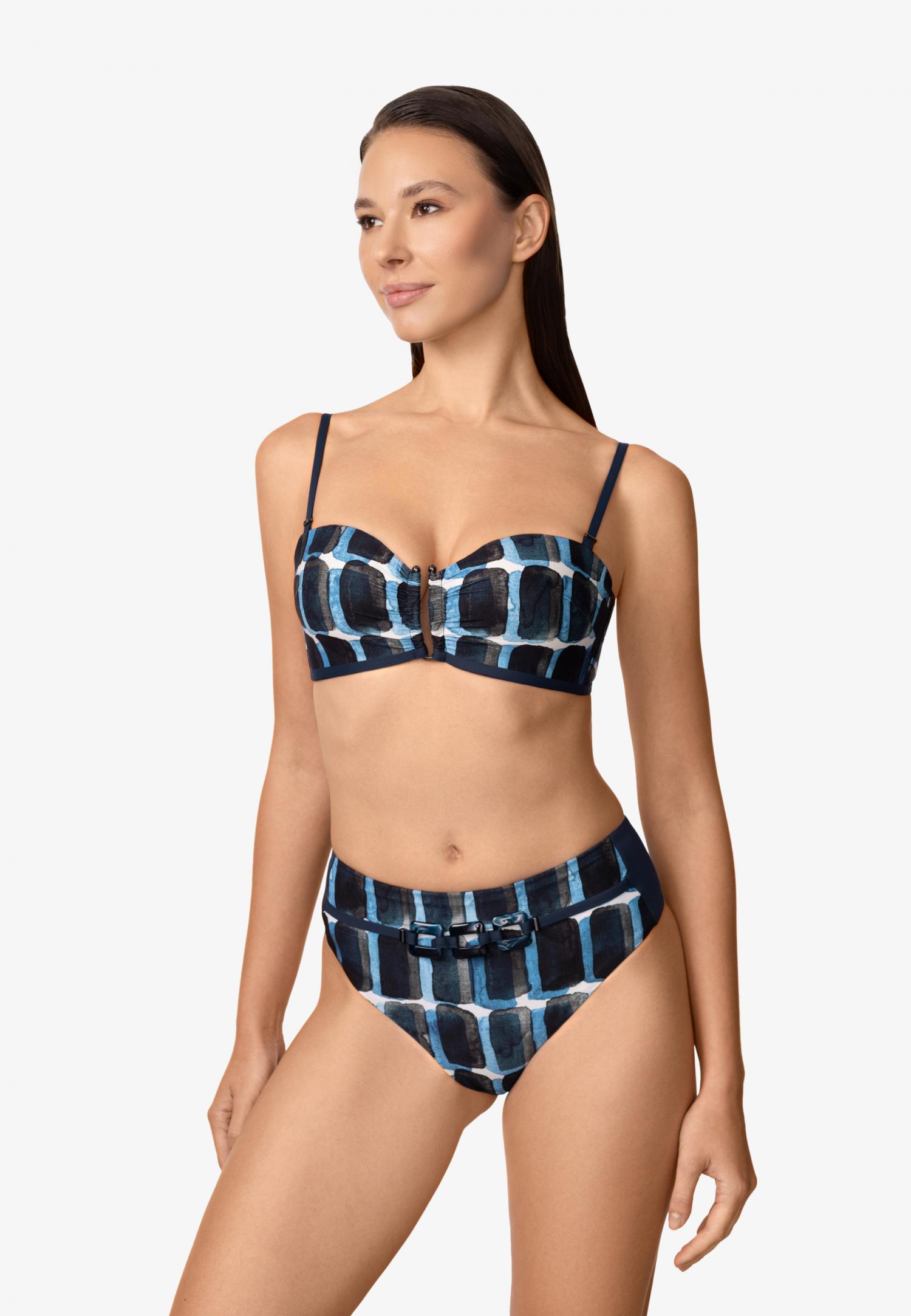 М'яка чашка на монокаркасній підтримці, без коректорів. По лінії талії декоративний пояс з аксесуаром. Завищений виріз по лінії бікіні.