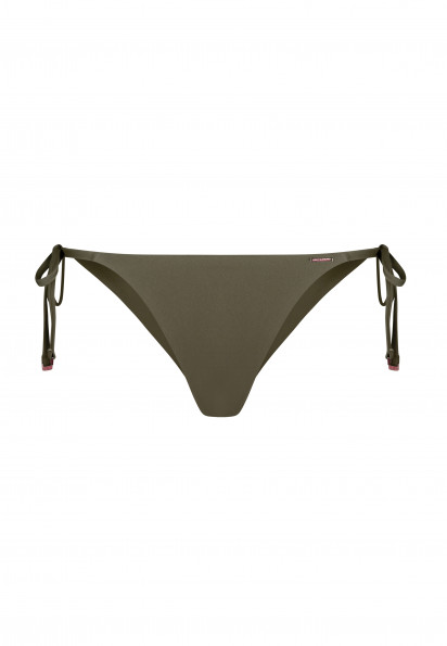 Серія класичних однотонних купальників. Купальники виконані з матеріалу з волокном "LYCRA ADAPTIV". Вироби з цих матеріалів ідеально сідають по фігурі будь-якого типу і в міру збільшення розміру еластичність виробів зростає. Плавки жіночі тонг з низькою посадкою на зав'язках. Вертикальний шов і контур задньої половинки плавок по типу бразилітіла. М'які краї забезпечують додатковий комфорт.а вигідно підкреслює природні вигини