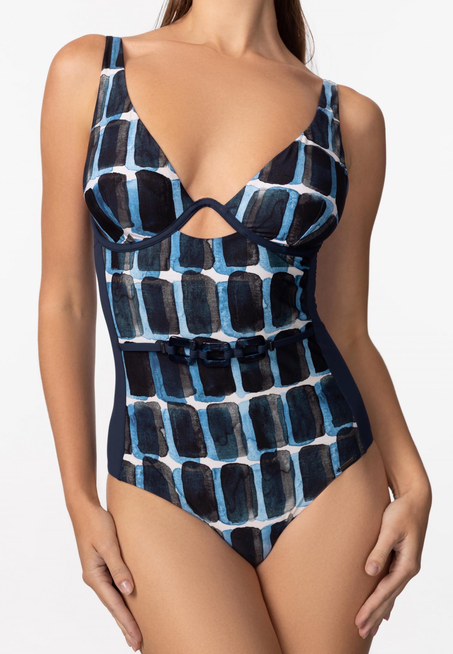 Купальник з вшитими формованими коректорами «бандо». Декольте має асиметричний крій. Одна зйомна бретель.
