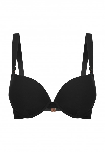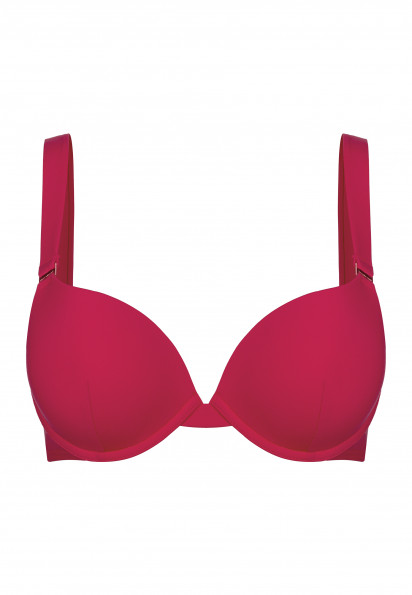 Серія класичних однотонних купальників. Купальники виконані з матеріалу з волокном "LYCRA ADAPTIV". Вироби з цих матеріалів ідеально сідають по фігурі будь-якого типу і в міру збільшення розміру еластичність виробів зростає. Верх купальника з формованими чашками на кісточках. Знімні вкладиші пуш-ап. Комфортну посадку забезпечують регульовані бретелі. На спині застібка.
