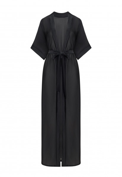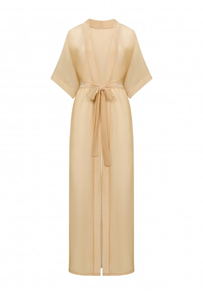 Повітряна туніка максі з сітки-меш з делікатними вкрапленнями тонкої металізованої нитки створює легкий мерехтливий ефект і вишуканий силует. Бічні розрізи додають свободу рухів і динаміку образу. Пояс підкреслює талію і створює акуратну посадку.
