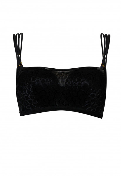 Бюстгальтер-балконет на каркасній підтримці з формованою чашкою і вбудованим «пуш-ап». Оздоблення з ефектом «прихованого каркасу». Бокові деталі з підтримуючими кісточками. По верхньому і нижньому краю йде силіконова стрічка. Зйомні бретелі-спагетті.
