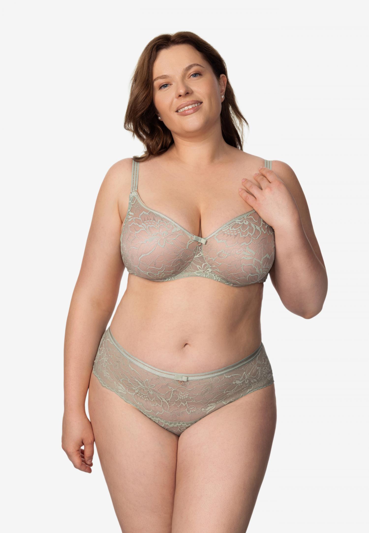 Бюстгальтер з напівдубльованою поролоновою чашкою спейсер на кісточках. Тонкий дихаючий матеріал «Spacer» дуже приємний і комфортний у використанні. Чашка декорована еластичним мереживом із вплетеною шовковистою ниткою, яка надає мереживу особливого витонченого блиску. Бічні деталі з мережива, на підкладці з сітки. Бретелі зі вставками з мережива на спинці декоровані подвійною золотою ниткою.